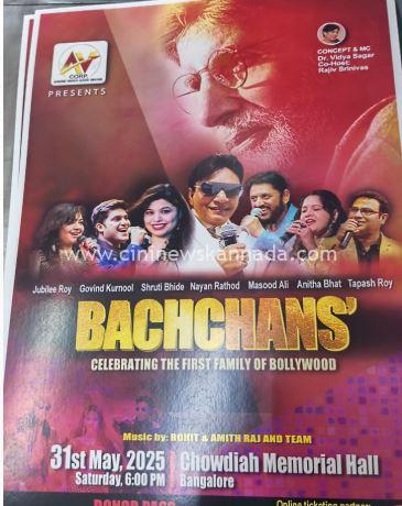 ಭಾರತ ಕಂಡ ಲೆಜೆಂಡರಿ ಕಲಾವಿದ, ಬಾಲಿವುಡ್ ಬಿಗ್ ಬಿ ಸಹಸ್ರಮಾನದ ಮಹಾನಾಯಕ, ಅಮಿತಾಬ್ ಬಚ್ಚನ್ ಅಭಿನಯದ ಅವಿಸ್ಮರಣೀಯ ಗೀತೆಗಳ ರಸಮಂಜರಿ ಕಾರ್ಯಕ್ರಮ ಮೇ 31ರಂದು ಬೆಂಗಳೂರಿನ ಚೌಡಯ್ಯ ಮೆಮೋರಿಯಲ್ ಹಾಲ್ ನಲ್ಲಿ ನಡೆಯಲಿದೆ.