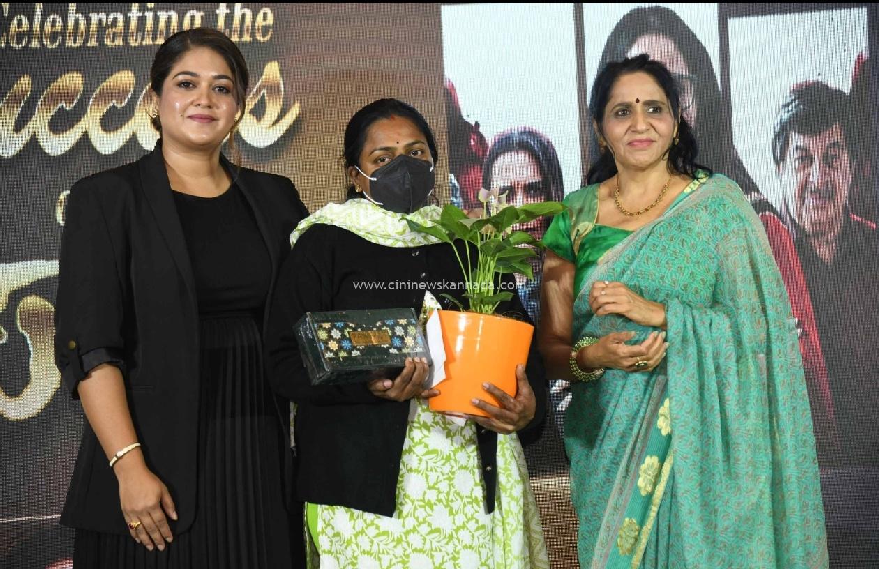 ಚಿತ್ರದ ಕಲೆಕ್ಷನ್ ನಿಂದ ಬಂದ ಹಣದಿಂದ ಆಸಿಡ್ ದಾಳಿಗೆ ತುತ್ತಾದ ಮೂವರು ಮಹಿಳೆಯರಿಗೆ ಐವತ್ತು ಸಾವಿರದ ಚೆಕ್ ನೀಡಿ ಸನ್ಮಾನಿಸಿದರು. ನಟಿ ಮೇಘನರಾಜ್,. ಹಿರಿಯ ನಟರಾದ ಶ್ರೀನಾಥ್, ಸುರೇಶ್ ಹೆಬ್ಳೀಕರ್ ಮುಂತಾದವರು ಸಮಾರಂಭದಲ್ಲಿ ಉಪಸ್ಥಿತರಿದ್ದರು