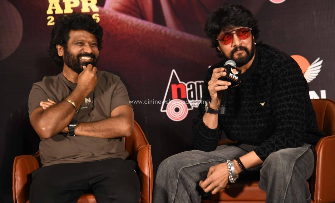 ಕಿಚ್ಚ ಸುದೀಪ್ ಪಾತ್ರದ ಬಗ್ಗೆ ಮಾಹಿತಿ ನೀಡಲು ನಿರ್ದೇಶಕ ಪ್ರೇಮ್ ತಂಡ ಜೊತೆಯಾಗಿತ್ತು, ಈ ವೇಳೆನಟ ದ್ರುವ ಸರ್ಜಾ, ನಾಯಕಿ ರೀಶ್ಮಾ ನಾಣಯ್ಯ ಭಾಗಿಯಾಗಿದ್ದರು