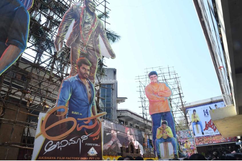 ‘ತಾರಕಾಸುರ’ ಖ್ಯಾತಿಯ ರವಿಕಿರಣ್ ಅಭಿನಯಿಸುತ್ತಿರುವ ‘ಅಪ್ಪು ಅಭಿಮಾನಿ’ ಚಿತ್ರದ 50 ಅಡಿ ಎತ್ತರದ ಕಟ್ಔಟ್ ನರ್ತಕಿ ಚಿತ್ರಮಂದಿರದ ಆವರಣದಲ್ಲಿ ಅನಾವರಣಗೊಂಡಿತು. ವಾಣಿಜ್ಯ ಮಂಡಳಿ ಅಧ್ಯಕ್ಷ ನರಸಿಂಹಲು, ರಾಘವೇಂದ್ರ ರಾಜ್ಕುಮಾರ್, ಸಾರಾಗೋವಿಂದು, ಎಂ.ಎನ್.ಸುರೇಶ್ ಕಾರ್ಯಕ್ರಮಕ್ಕೆ ಚಾಲನೆ ನೀಡಿದರು.