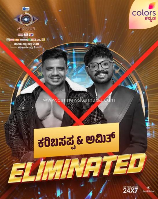 12ನೇ ಆವೃತ್ತಿಯ ಬಿಗ್ಬಾಸ್ಗೆ ಜೋಡಿಯಾಗಿ ಮನೆ ಪ್ರವೇಶಿಸಿದ್ದ ಅಂತರಾಷ್ಟ್ರೀಯ ದೇಹದಾಡ್ಯ ಸ್ಪರ್ಧಿ ಕರಿಬಸಪ್ಪ ಮತ್ತು ಆರ್ ಜೆ ಅಮಿತ್ ಈ ವಾರ ಬಿಗ್ಬಾಸ್ ಮನೆಯಲ್ಲಿ ಇಬ್ಬರ ಪ್ರಯಾಣ ಅಂತ್ಯವಾಗಿದೆ. ಮೊದಲವಾರದ ಎಲಿಮಿನೇಷನ್ಲ್ಲಿ ಈ ಇಬ್ಬರು ಮನೆಯಿಂದ ಹೊರಬಂದಿದ್ಧಾರೆ.